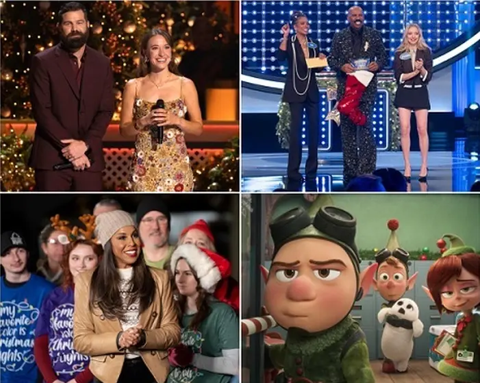 Photo Credits (clockwise from top left): “CMA Country Christmas” (Disney/Connie Chornuk), “Celebrity Family Feud” (Disney/Wilford Harewood), “Prep & Landing: The Snowball Protocol” (Disney), “The Great Christmas Light Fight” (Disney/Bryan Houston)