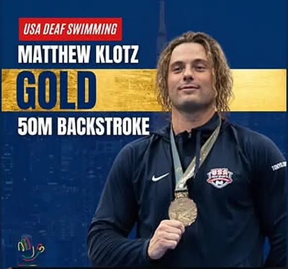 For more than a decade, Matt Klotz has been redefining what’s possible in deaf swimming. The American athlete, who began competing internationally as a teenager, entered the 2025 Games with more than twenty Deaflympics medals, multiple world records, and a reputation for explosive speed in backstroke and sprint freestyle.