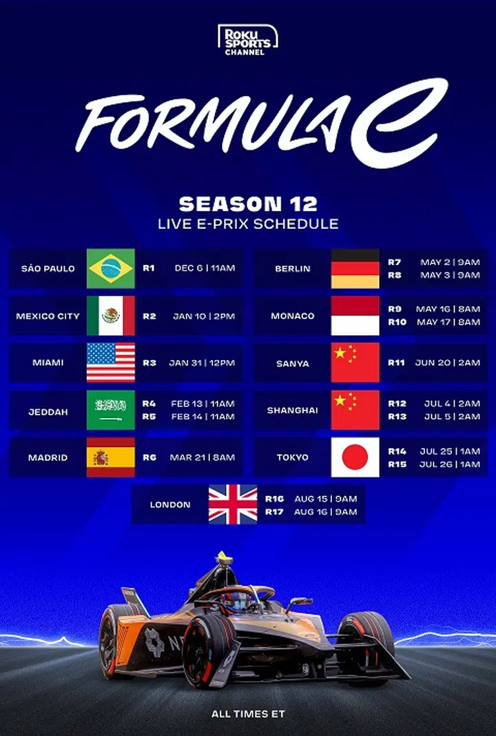 Fans will be able to access Formula E races for free and prominently featured across Roku devices and The Roku Channel. Fans can watch free, live Formula E races on their Roku device, Roku mobile app, or therokuchannel.com.