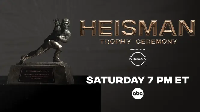 ESPN – the exclusive home of the Heisman Trophy Ceremony since 1994 – will televise the Heisman Trophy Ceremony Presented by Nissan on Saturday, December 13, @ 7PM ET on ABC. For the fifth year, the Heisman Ceremony will originate from Jazz at Lincoln Center’s Appel Room in New York City and will be hosted by ESPN’s Chris Fowler, emceeing for the 32nd straight year – every year ESPN has presented the ceremony. The 2025 ceremony marks the 91st awarding of the Heisman Trophy.